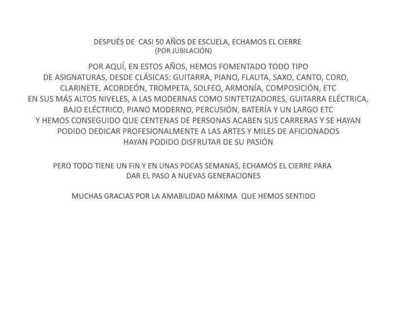 Elestudiodecualquierinstrumentoocantolleva implícitoestudiarconjuntamentetécnica,teoría,ritmo, dictadomusical,lecturaaprimeravistaycomposición básica.Tambiéndamosmuchaimportanciaaencontrartrabajo, alasactuacionesyalasprácticasenescenarioylo resolvemosatravésdeloscontactosdequedisponela escuelaenpubs,teatrosycircuitosmusicalesolas agencias y productoras de artistas.